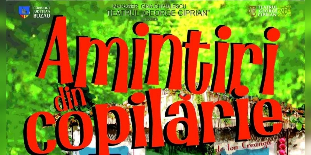 Sâmbătă, 4 octombrie, de la ora 11:00, publicul buzoian este invitat la Teatrul „George Ciprian” pentru a se bucura de un spectacol plin de nostalgie și emoție – „Amintiri din copilărie”, regizat de Ionuț Octavian Ghinea.