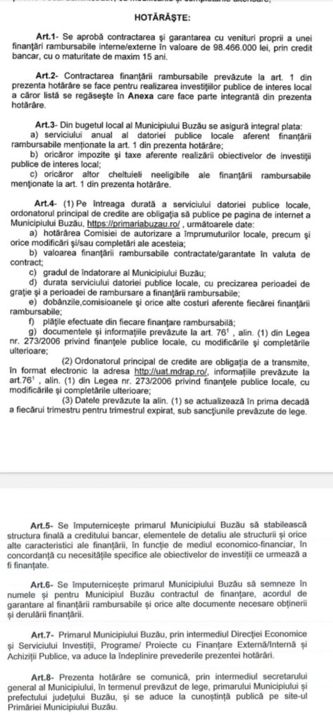 Pe lângă creditul propus de Primărie, consilierul aduce în discuție și situația companiei de apă, care ar urma să își prelungească o linie de credit, adăugând aproximativ 2 milioane de euro la nivelul datoriilor.