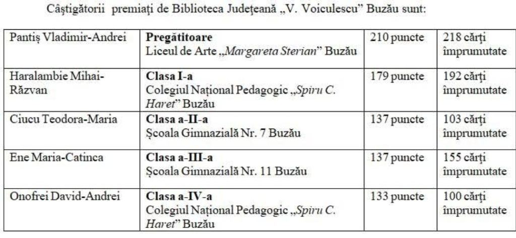Premii pentru micii cititori ai Bibliotecii Județene „V. Voiculescu” Buzău